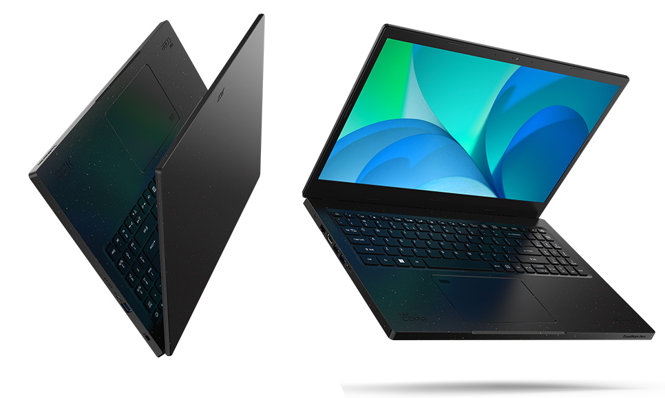 Parte a gamei Vero de PC-uri Eco, TravelMate Vero are un șasiu cu 30% plastic PCR, este proiectat pentru a fi ușor de reparat și este livrat în ambalaje 100% reciclabile.